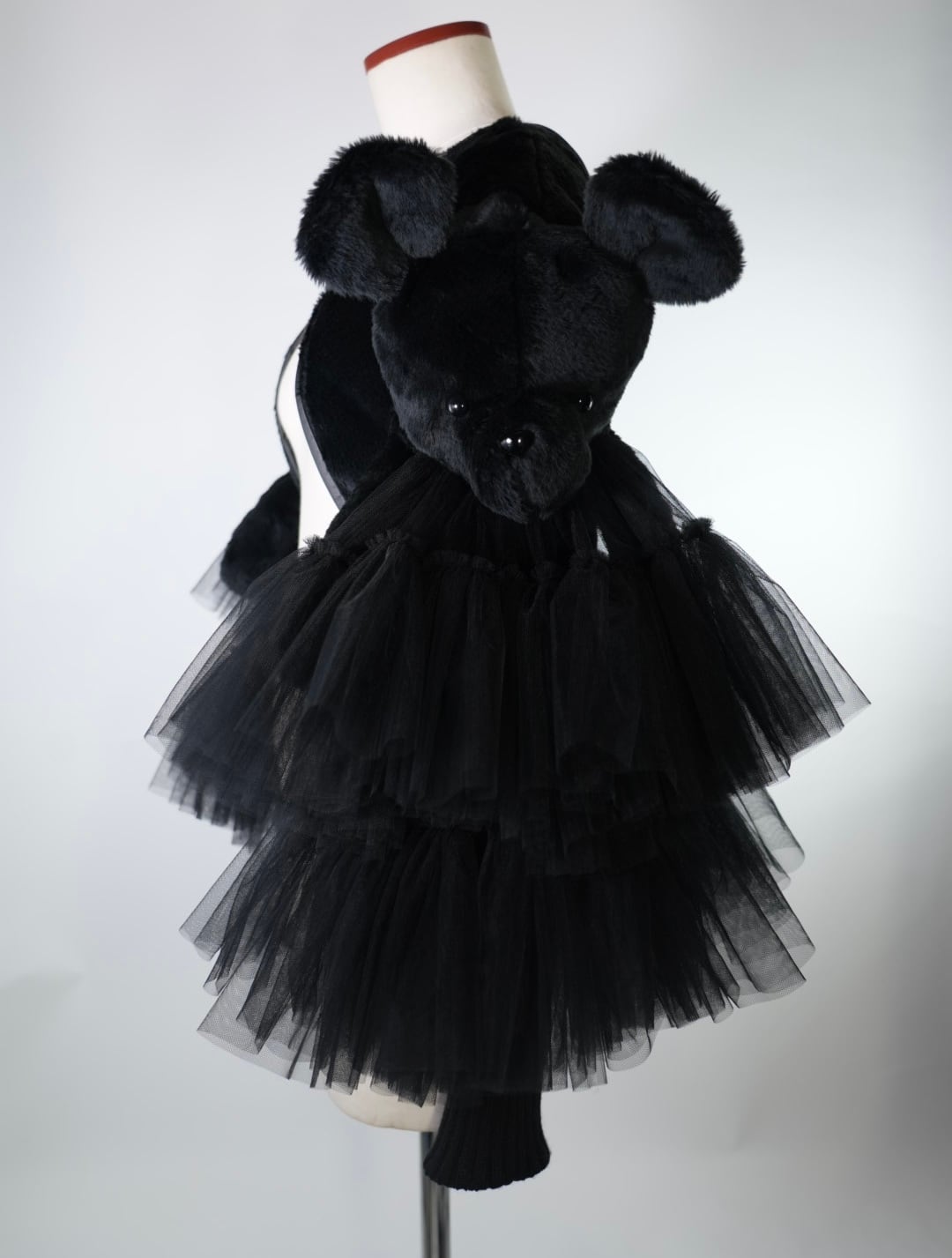 立体的なくま袖と、ボリュームのあるチュールが印象的なハーネス。ふわっと重なるチュールが、動くたびに軽やかに揺れます。